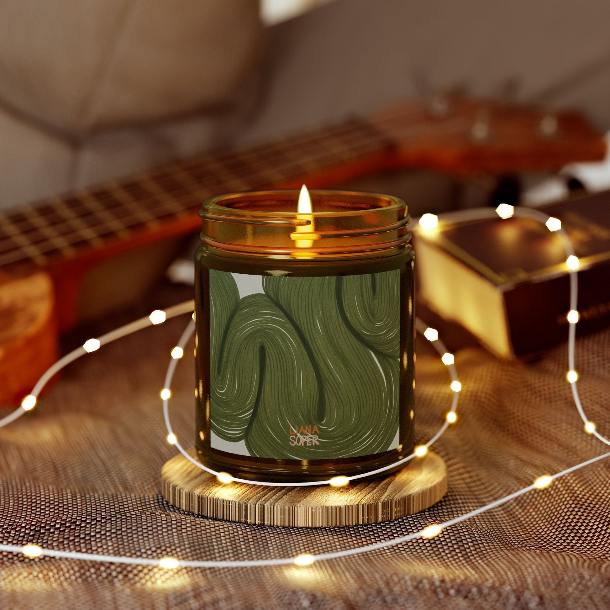Each jar has one of my original paintings printed on it - so while it's burning, you're looking at art, and when it's done, you still have art.