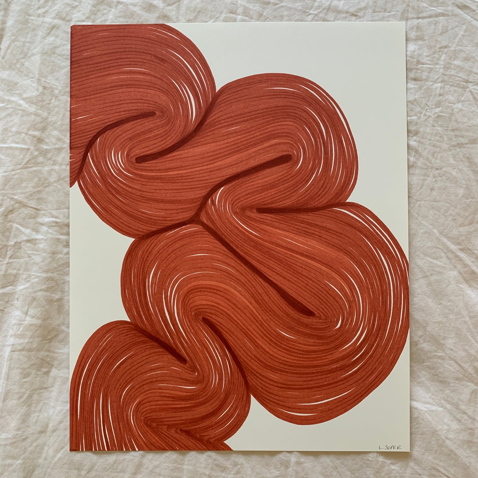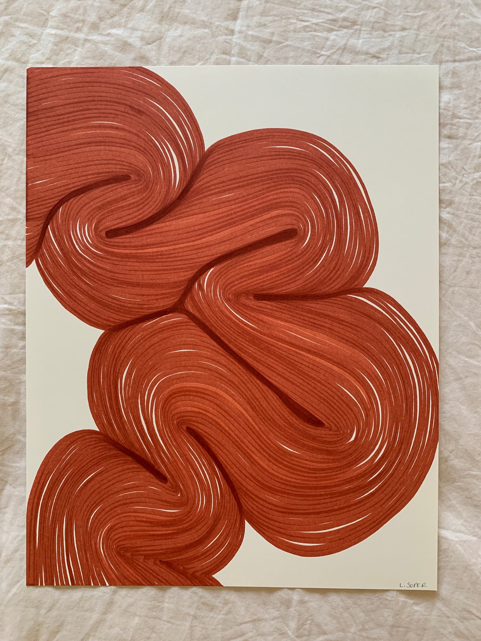 Each piece is signed in pencil front and back. It comes covered with archival paper between foam core and cardboard for protection when shipped. Larger pieces are rolled with archival paper and put in a mailing tube for protection. Please carefully remove your art and lay flat with archival paper on top to flatten out.
