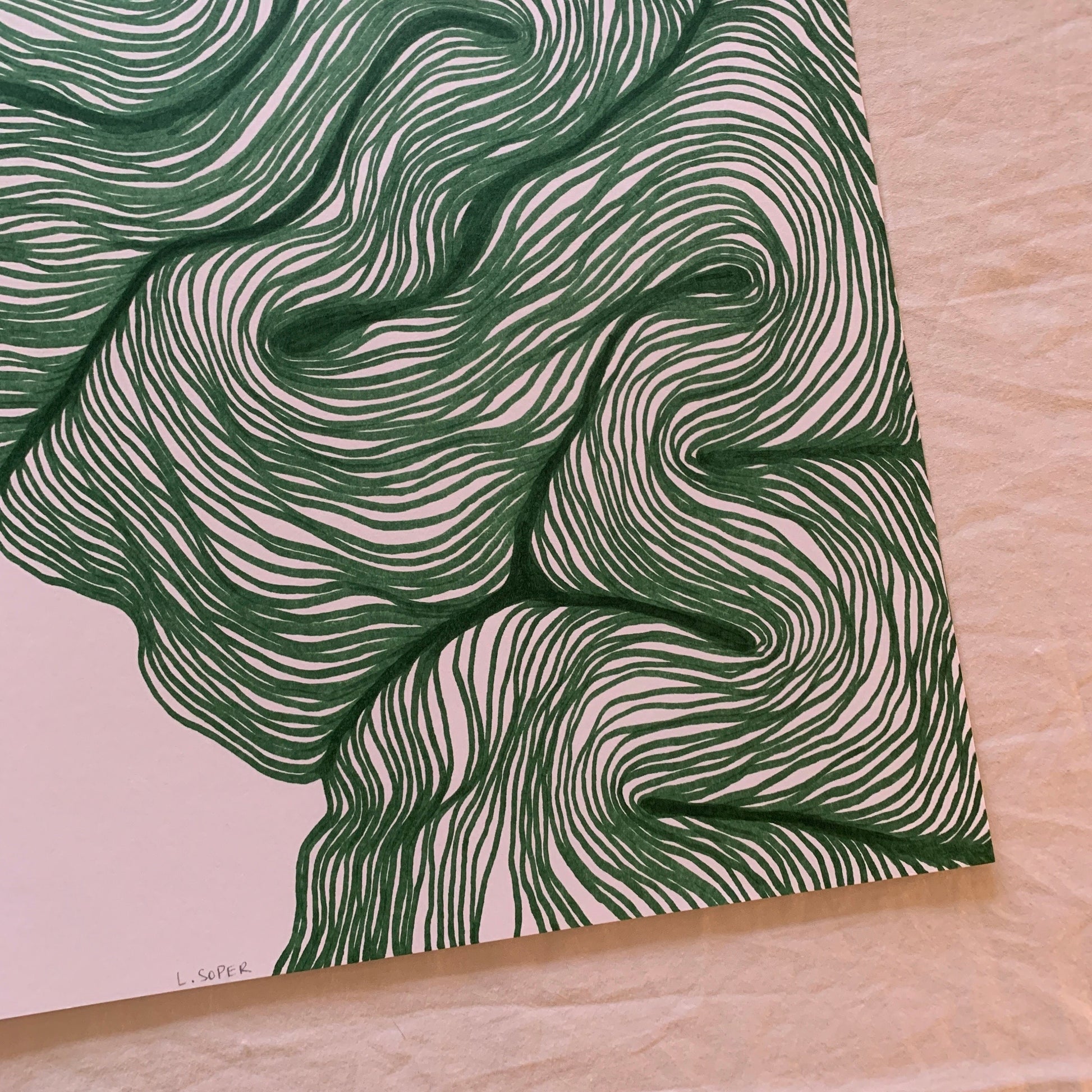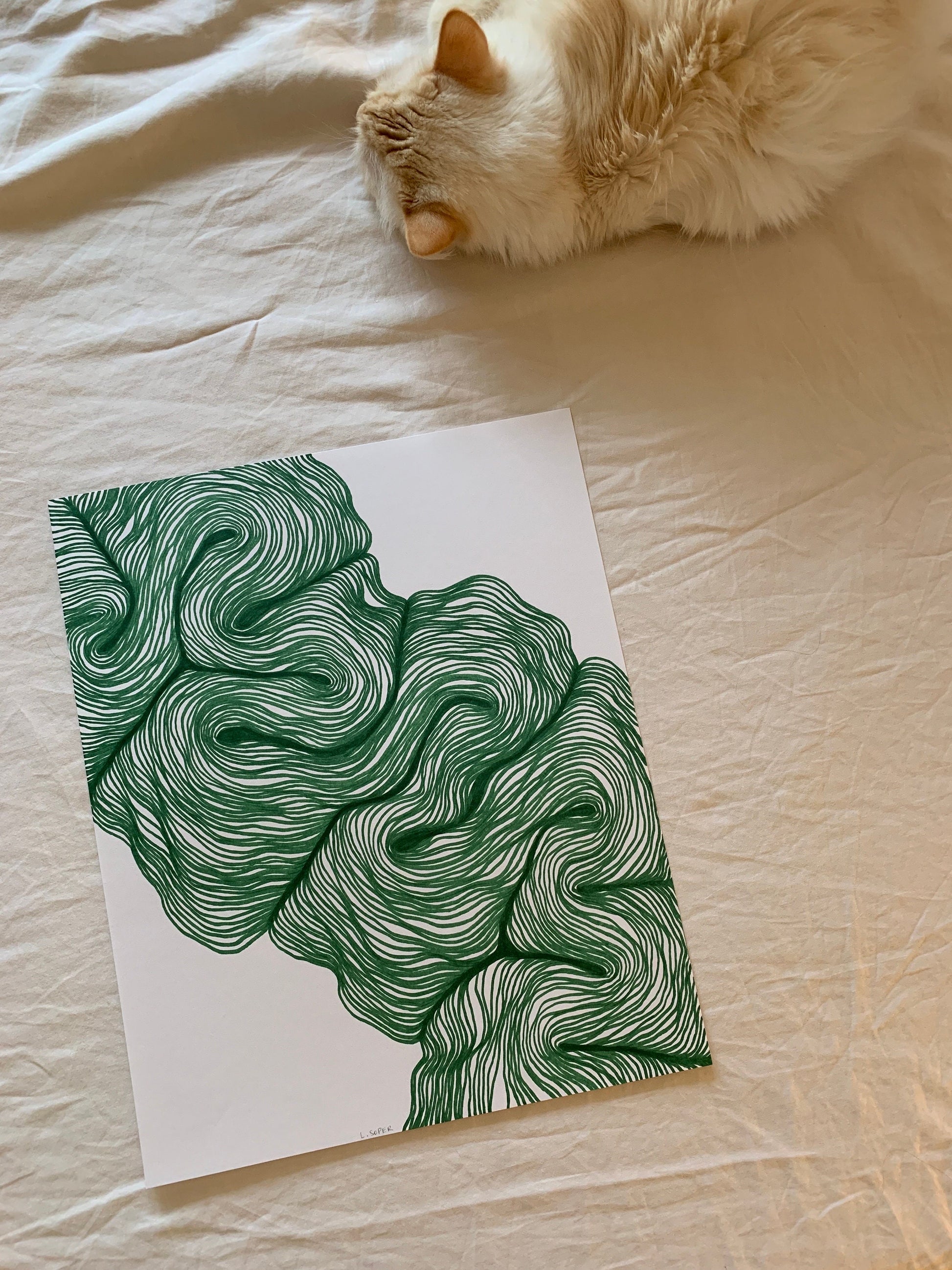 Each piece is signed in pencil front and back. It comes covered with archival paper between foam core and cardboard for protection when shipped. Larger pieces are rolled with archival paper and put in a mailing tube for protection. Please carefully remove your art and lay flat with archival paper on top to flatten out.
